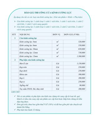 BÁO GIÁ THI CÔNG CỬA KÍNH CƯỜNG LỰC